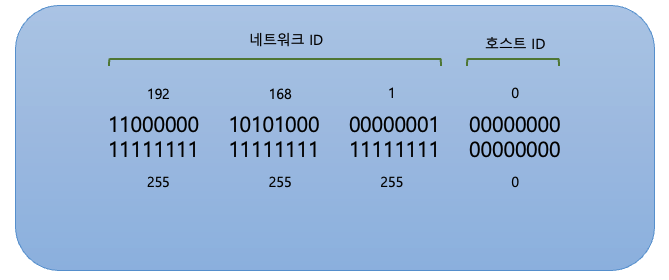 - IP 주소는 네트워크 ID와 호스트 ID로 나누어진다.