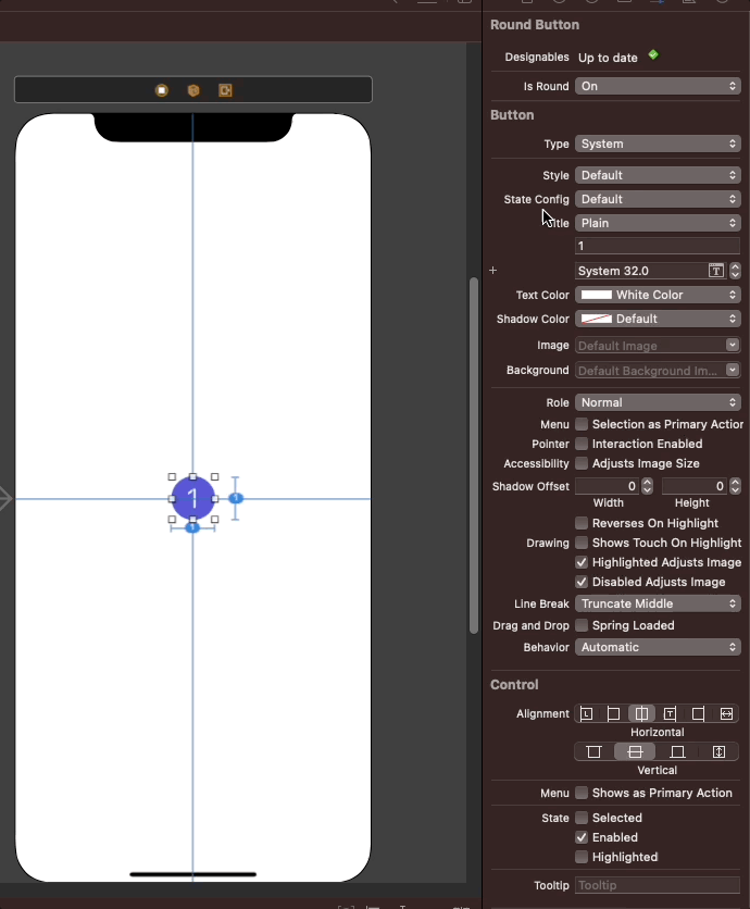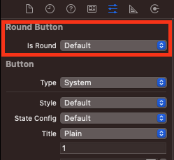 다시 스토리보드로 돌아가서 'isRound' 속성의 값을 변경하면 다음과 같이 실시간으로 스토리보드에서 버튼의 모양이 바뀌는 것을 확인할 수 있다.
