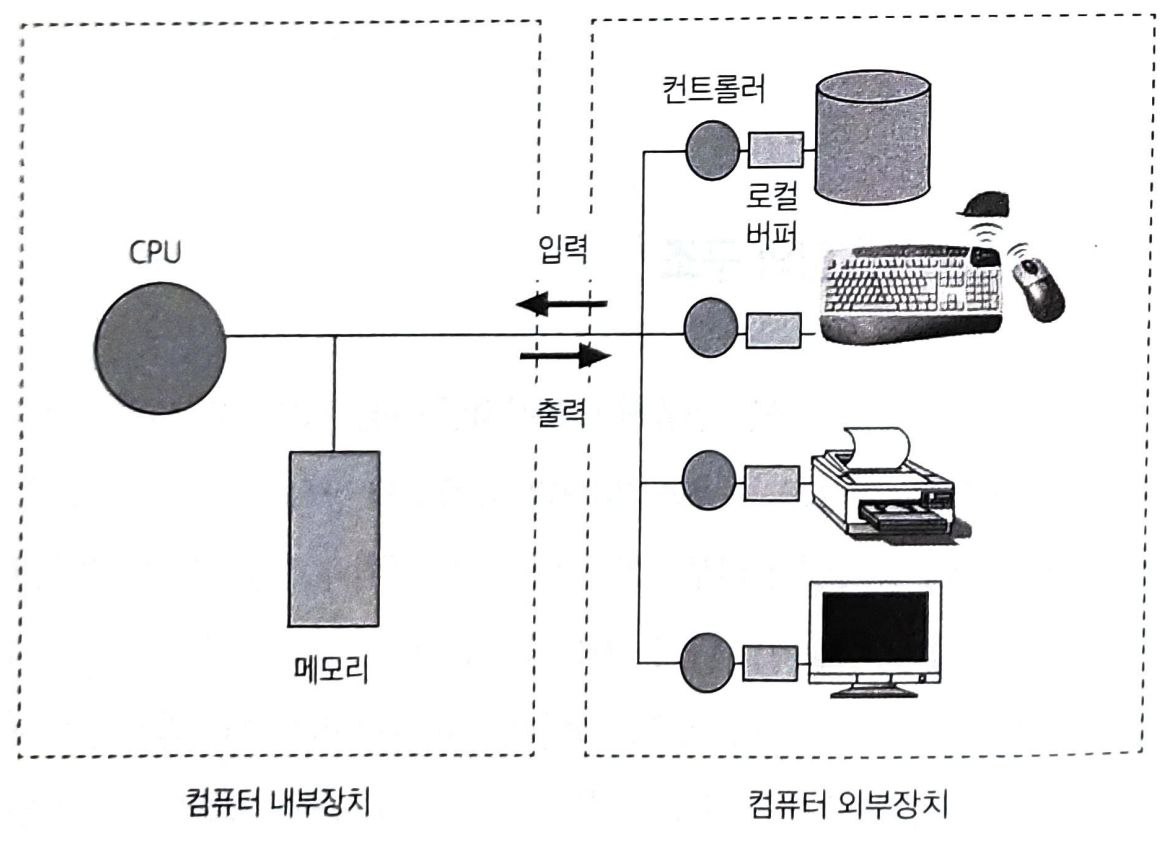 - 메모리 및 입출력장치 등의 각 하드웨어 장치에는 이들을 제어하는 작은 CPU인 컨트롤러라는 것이 존재한다.