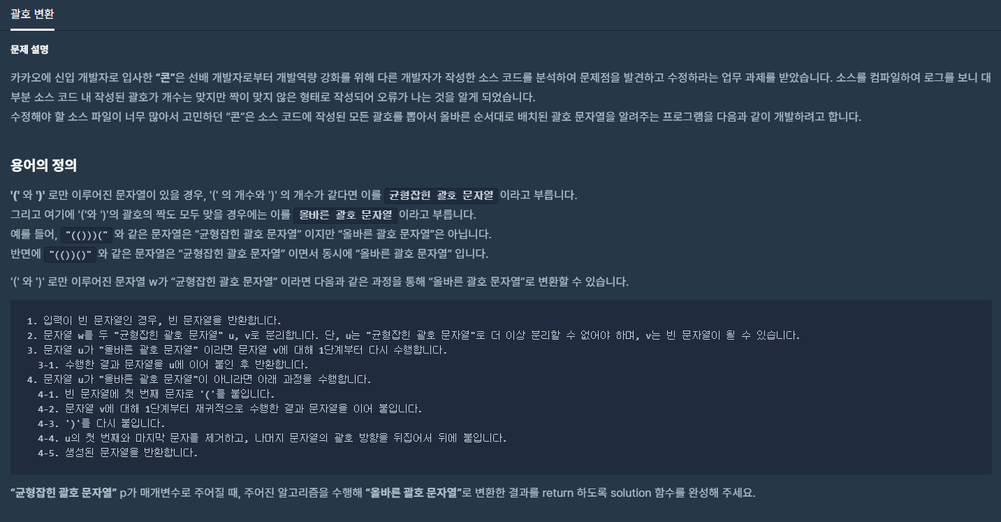 } else { // u가 올바른 괄호 문자열이 아니라면