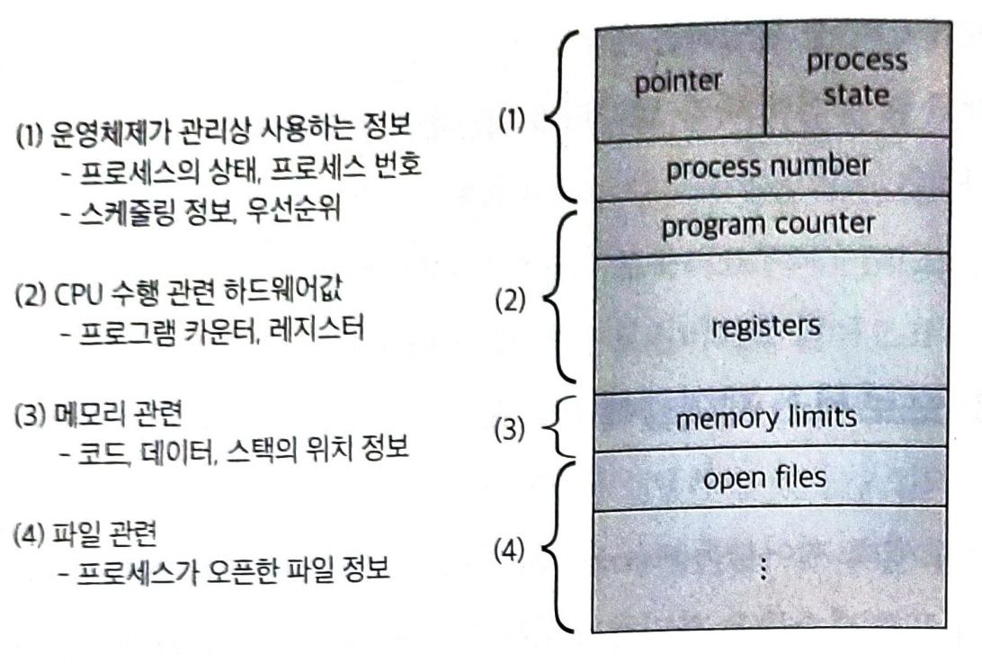 -> CPU 연산을 위해 현 시점에 레지스터에 어떤 값을 저장하고 있는지를 나타낸다 - CPU 스케줄링 정보(CPU scheduling information)