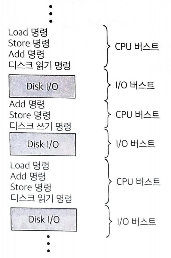 사용자 프로그램은 CPU 작업과 I/O 작업의 반복으로 구성된다. 프로그램의 수행은 다음과 같은 두 단계의 조합으로 이루어진다.