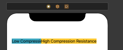 앞의 예제와 같이 각 라벨의 top / leading / trailing에 60/20/20의 간격이 설정되었다. 하지만 텍스트의 길이에 비해 공간이 부족해 에러가 발생한다. 이렇게 공간이 부족할 때 무엇이 줄어들지 설정해 주는 것이 Compression Resistance Priority이다. 두 라벨의 width를 설정해주지 않은 상태에서 20씩 간격을 주려면 두 라벨 중 하나가 작아져야한다.