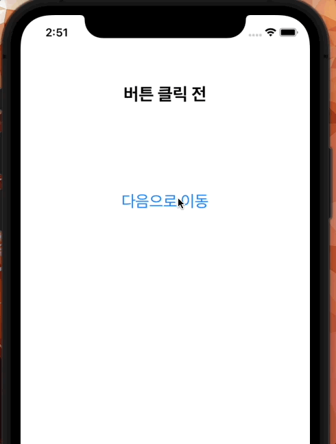 duration으로 0.5를 줬는데 이는 0.5초동안 라벨의 alpha 값을 beforeLabel의 경우 1에서 0으로, afterLabel의 경우 0에서 1로 변경하라는 의미이다. 실행하면 다음과 같이 부드럽게 전환되는 것을 확인할 수 있다.