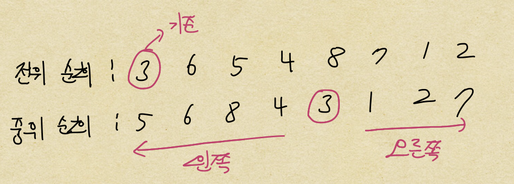# 해당 부모 노드를 기준으로 왼쪽 자식 노드들과 오른쪽 자식 노드들로 나뉜다.