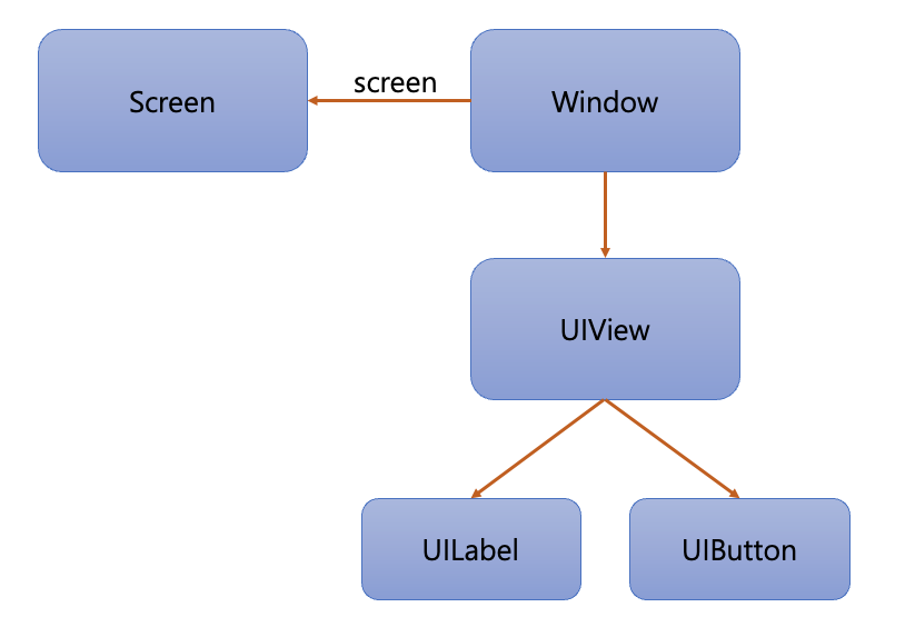 수많은 UIView 객체가 모인 Window는 이들을 화면으로 구성하여 Screen 객체에 보내고, Screen 객체는 이를 물리적인 기기에 표시한다. 이 객체들은 모두 UIKit 프레임워크에 정의된 클래스이며 아래의 그림과 같이 UIKit 프레임워크 내에 정의되어 있다.