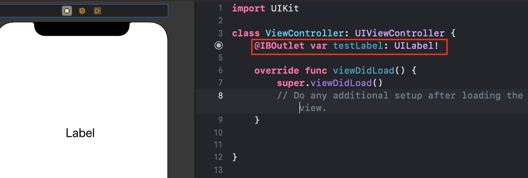 화면상의 객체를 소스코드에서 참조하기 위해 사용하는 어노테이션이다. @IBOutlet 어노테이션은 객체의 속성을 제어하기 위해 사용한다. 간단한 예제로 살펴보자.