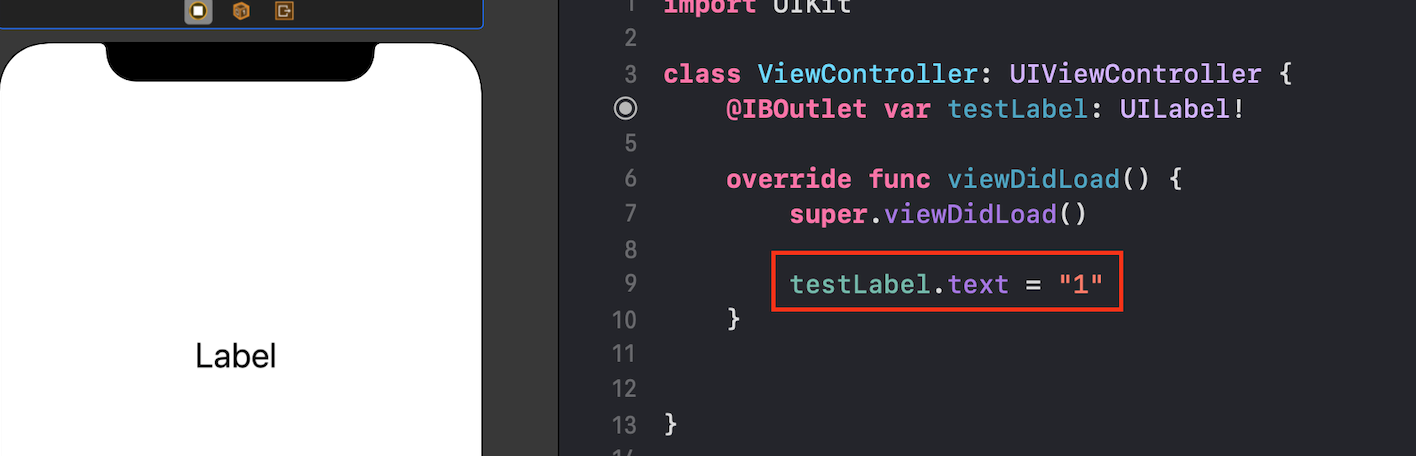 이제 앱이 로드될 때 testLabel의 텍스트 값을 "1로" 설정해 주면 된다.