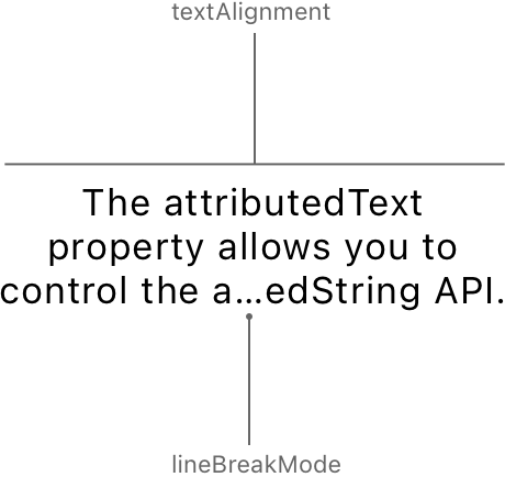 attributedText 속성은 NSAttributedString API를 사용하여 개별 문자 및 문자 그룹의 모양을 제어할 수 있다. 아래의 사진은 문자열의 글꼴, 색상 및 정렬을 사용자 정의하는 속성을 포함하는 NSAttributedString을 표시하는 Label을 보여준다.